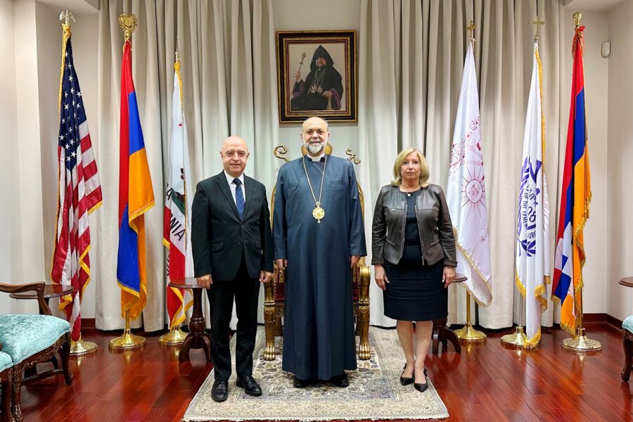 On Monday morning, October 20, 2025, H.E. Archbishop Kegham Khacherian, Prelate of the Western Prelacy of the United States, welcomed Rev. Dr. Haroutune Selimian, President…