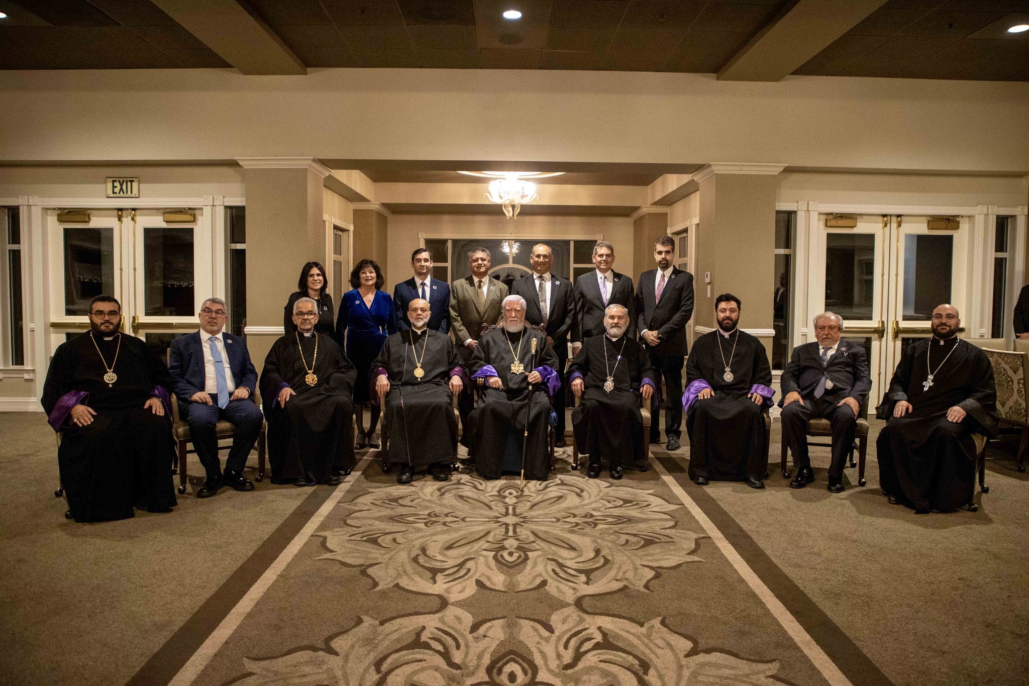 The official delegation included Their Eminences Archbishops Kegham Khatcherian and Anoushavan Tanielian, Prelates of the Armenian Prelacies of North America; Archbishops Moushegh Mardirossian and Torkom Donoyan; Bishop Dajad Ashekian, Chancellor of the Catholicosate; V. Rev. Fr. Hovagim Panjarjian, Director of the Media Department; V. Rev. Fr. Sarkis Aprahamian, Director of the Middle Eastern Section of the Ecumenical and Interreligious Relations Department and staff bearer; and the Co-Chairmen of the Lay Council of the Catholicosate, Mr. Stepan Der Bedrossian and Mr. Krikor Mahseredjian.
