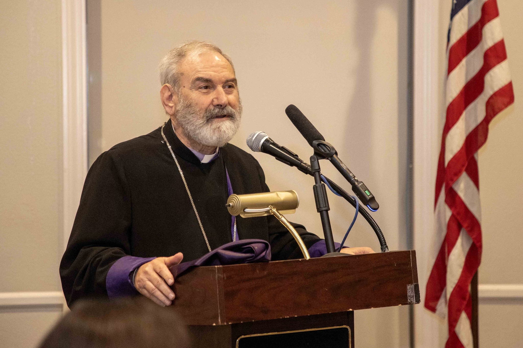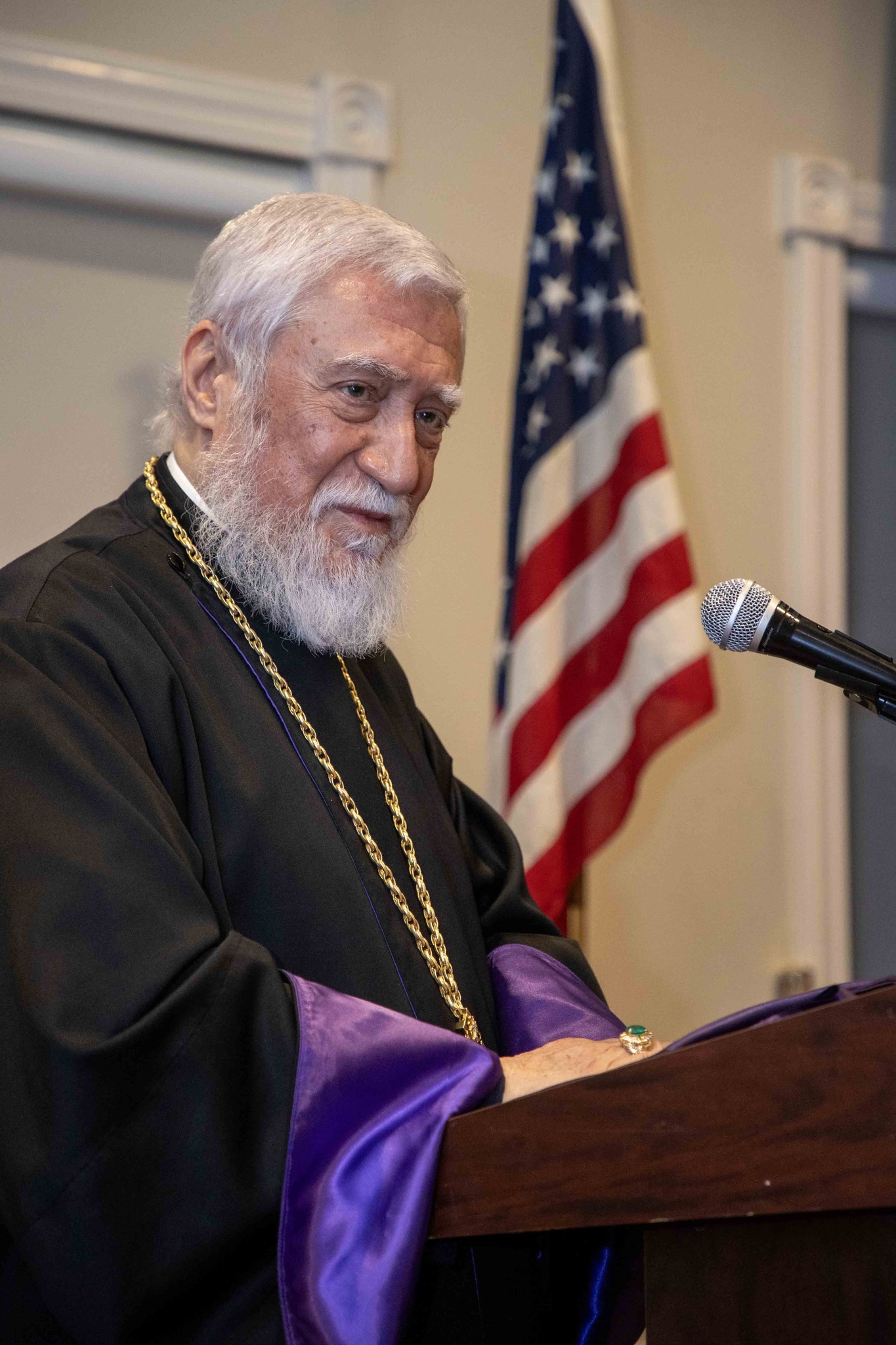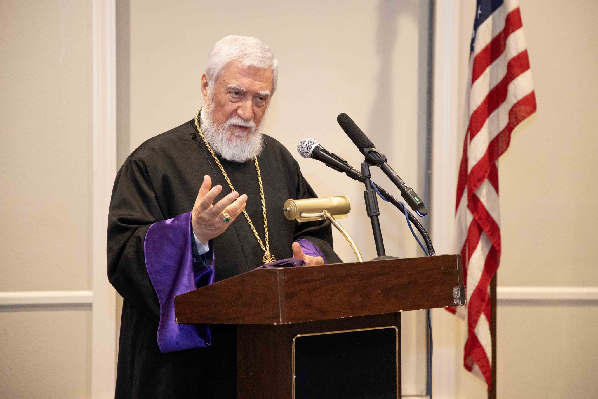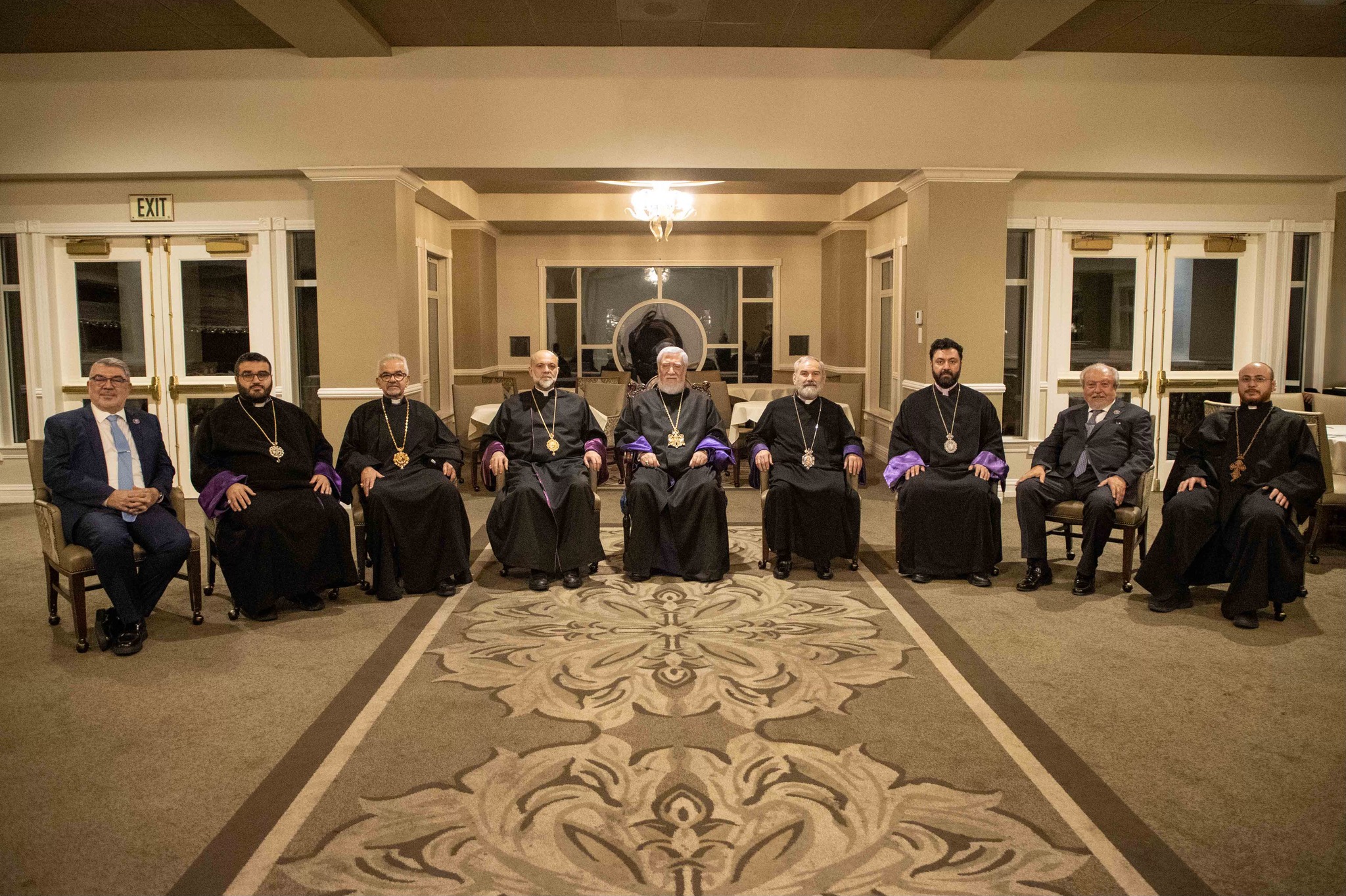 The official delegation included Their Eminences Archbishops Kegham Khatcherian and Anoushavan Tanielian, Prelates of the Armenian Prelacies of North America; Archbishops Moushegh Mardirossian and Torkom Donoyan; Bishop Dajad Ashekian, Chancellor of the Catholicosate; V. Rev. Fr. Hovagim Panjarjian, Director of the Media Department; V. Rev. Fr. Sarkis Aprahamian, Director of the Middle Eastern Section of the Ecumenical and Interreligious Relations Department and staff bearer; and the Co-Chairmen of the Lay Council of the Catholicosate, Mr. Stepan Der Bedrossian and Mr. Krikor Mahseredjian.