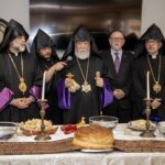 His Holiness conducted the Blessing of the Home service (Dnorehnek), offering prayers over bread, salt, and water. In his address, he praised the trustees, staff, and caregivers for their loving service, emphasizing that Ararat Home has always been a house of love, care, and Christian devotion, worthy of the respect and gratitude of the Armenian people.
