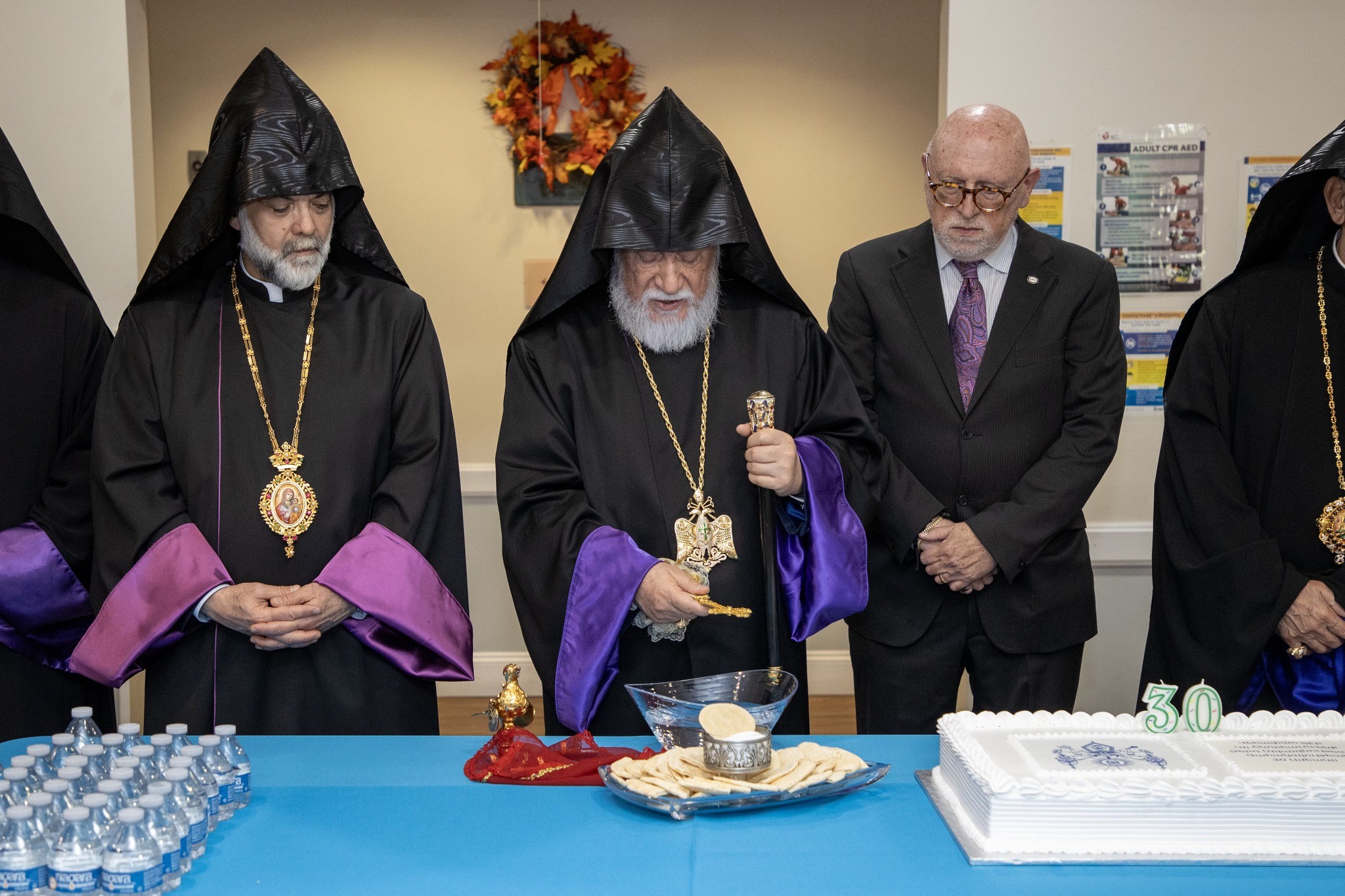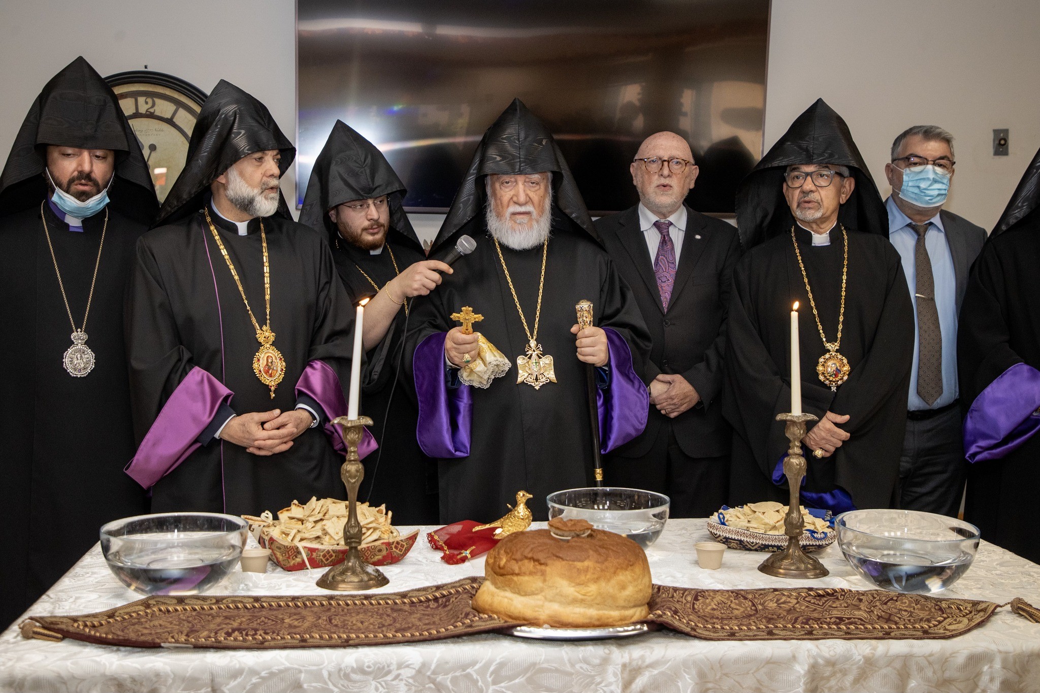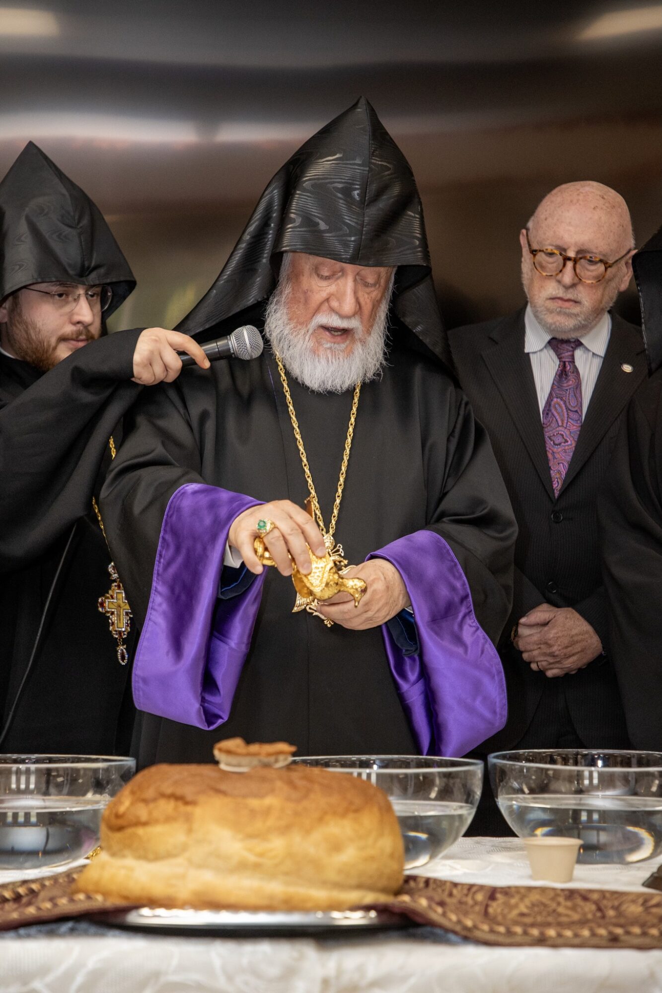 His Holiness conducted the Blessing of the Home service (Dnorehnek), offering prayers over bread, salt, and water. In his address, he praised the trustees, staff, and caregivers for their loving service, emphasizing that Ararat Home has always been a house of love, care, and Christian devotion, worthy of the respect and gratitude of the Armenian people.