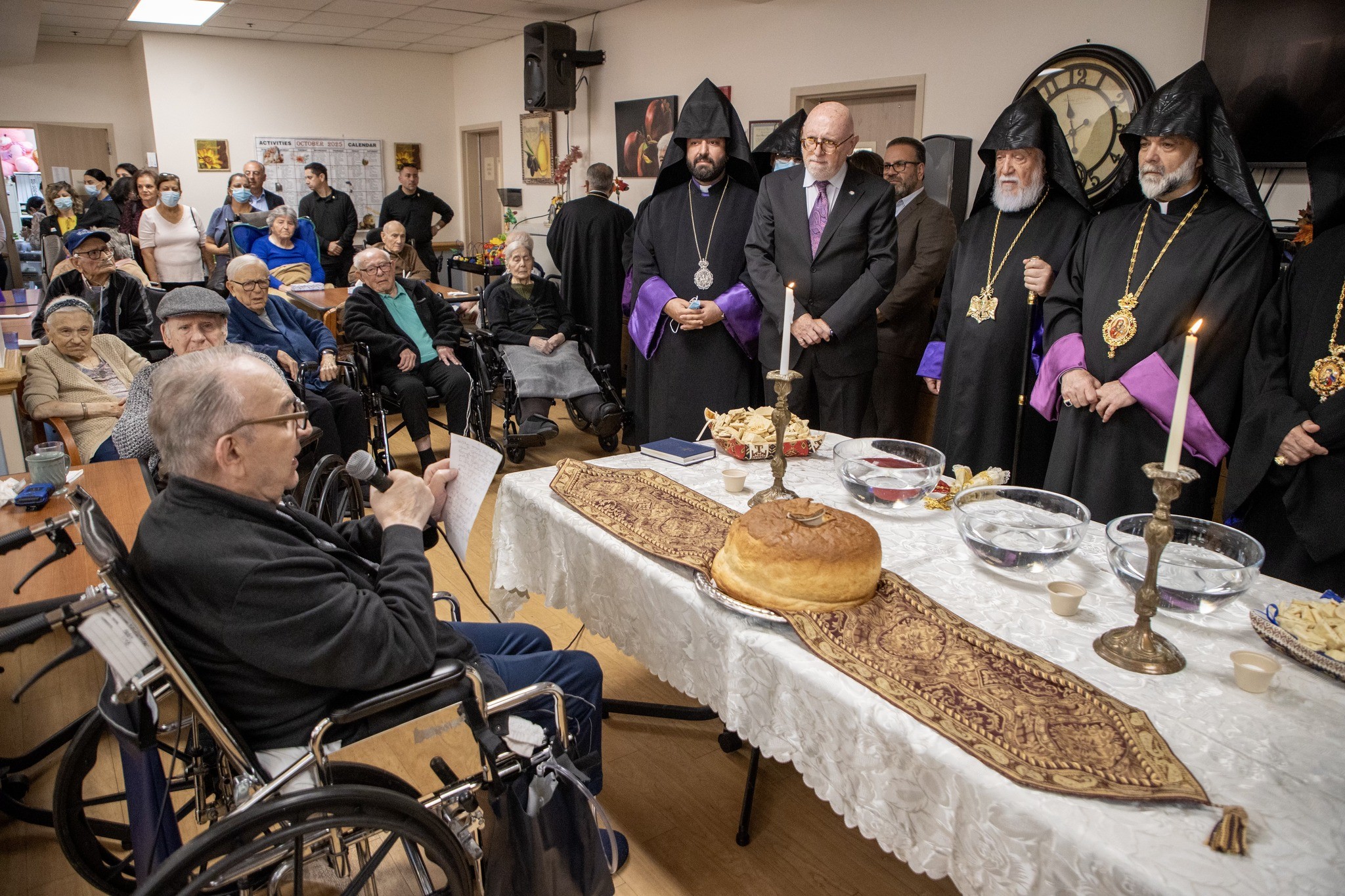 His Holiness was welcomed by the Chair of the Executive Committee, Joseph Kanimian, Esq., along with members of the administration and staff. In his welcoming remarks, Mr. Kanimian expressed the community’s joy in once again receiving the Catholicos, noting that each visit inspires renewed dedication to Ararat Home’s mission of care and service.