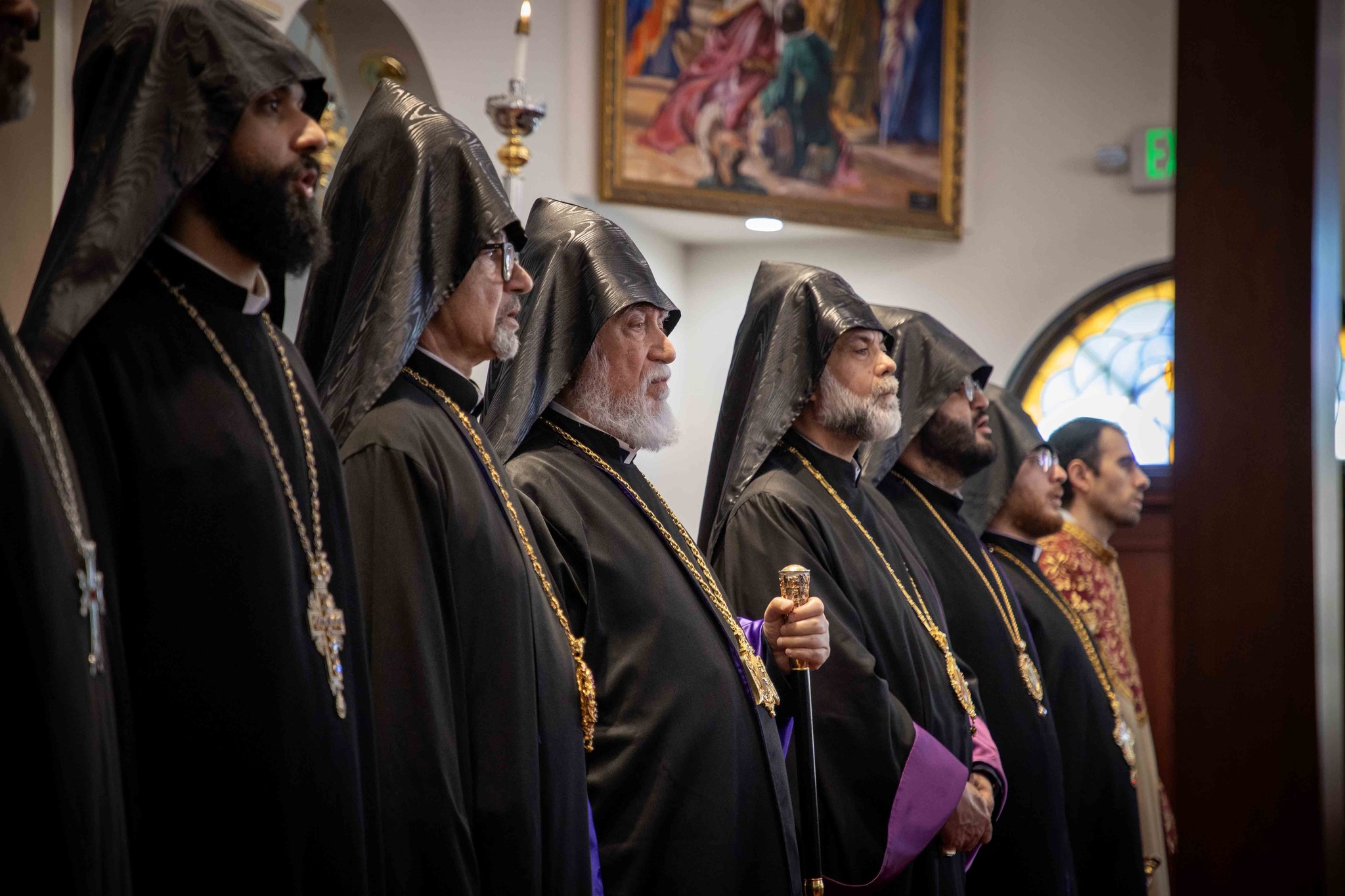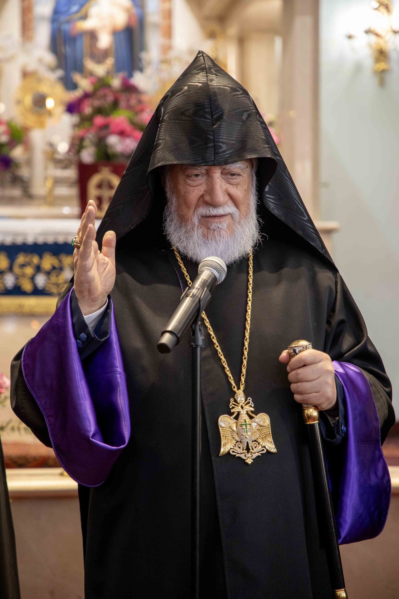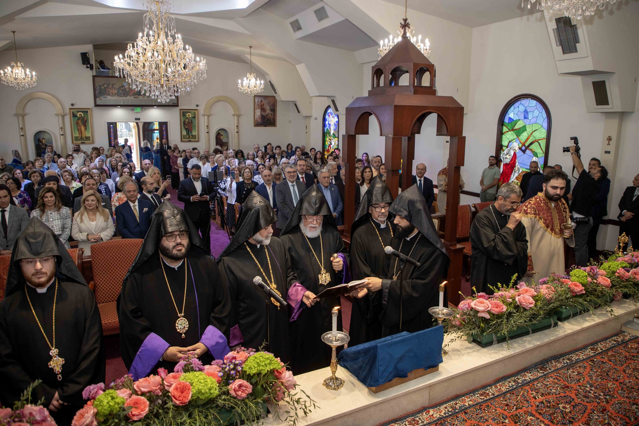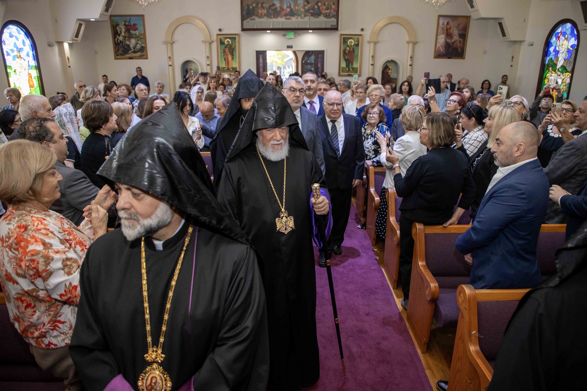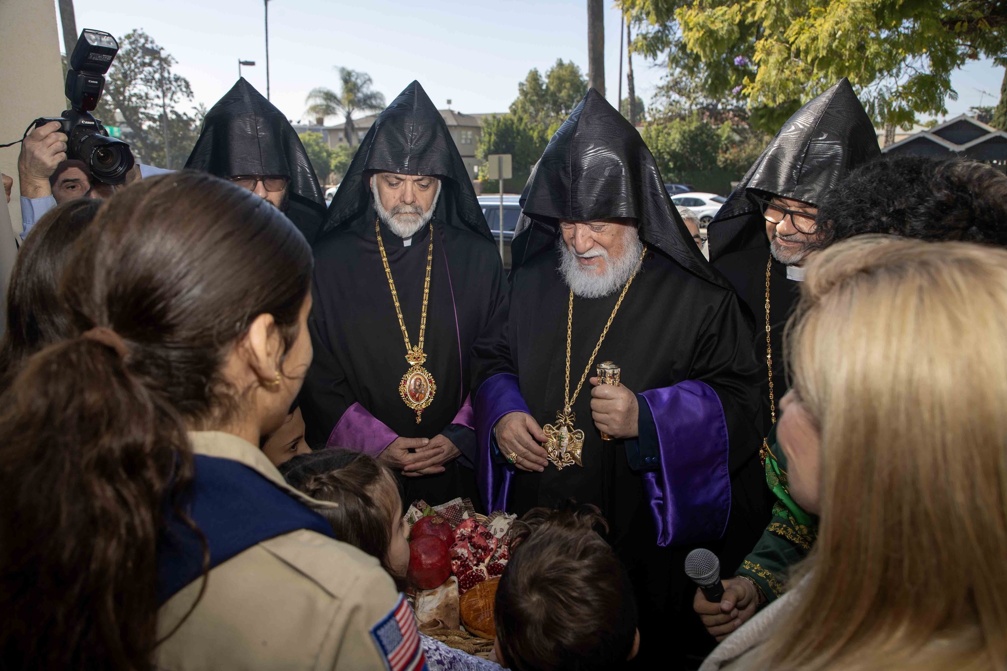 Following the Canonical Prayer, His Eminence Archbishop Kegham Khatcherian, Prelate of the Western Prelacy of the United States, conveyed words of welcome on behalf of the local Armenian community. He noted that the visit of His Holiness brought great joy, spiritual inspiration, and enthusiasm to the faithful of the Western Prelacy, and especially to the Armenians of Pasadena. He added that the parishioners of the region express their deep gratitude for this blessed visit.