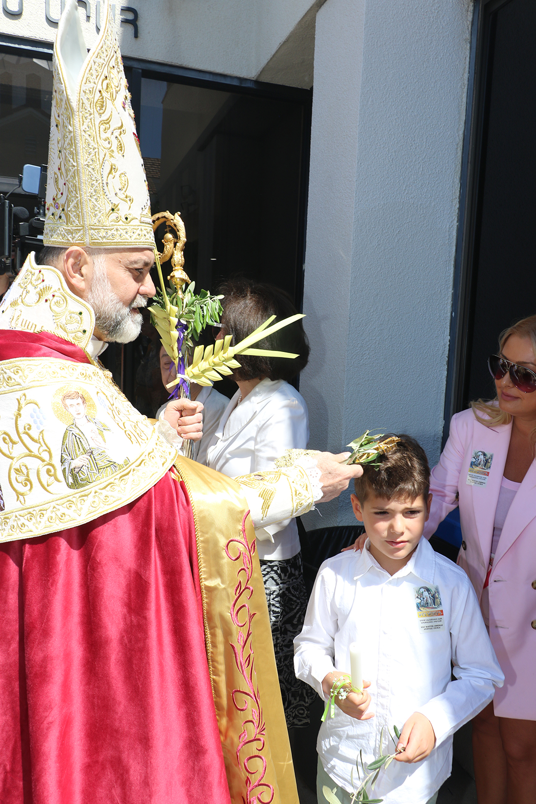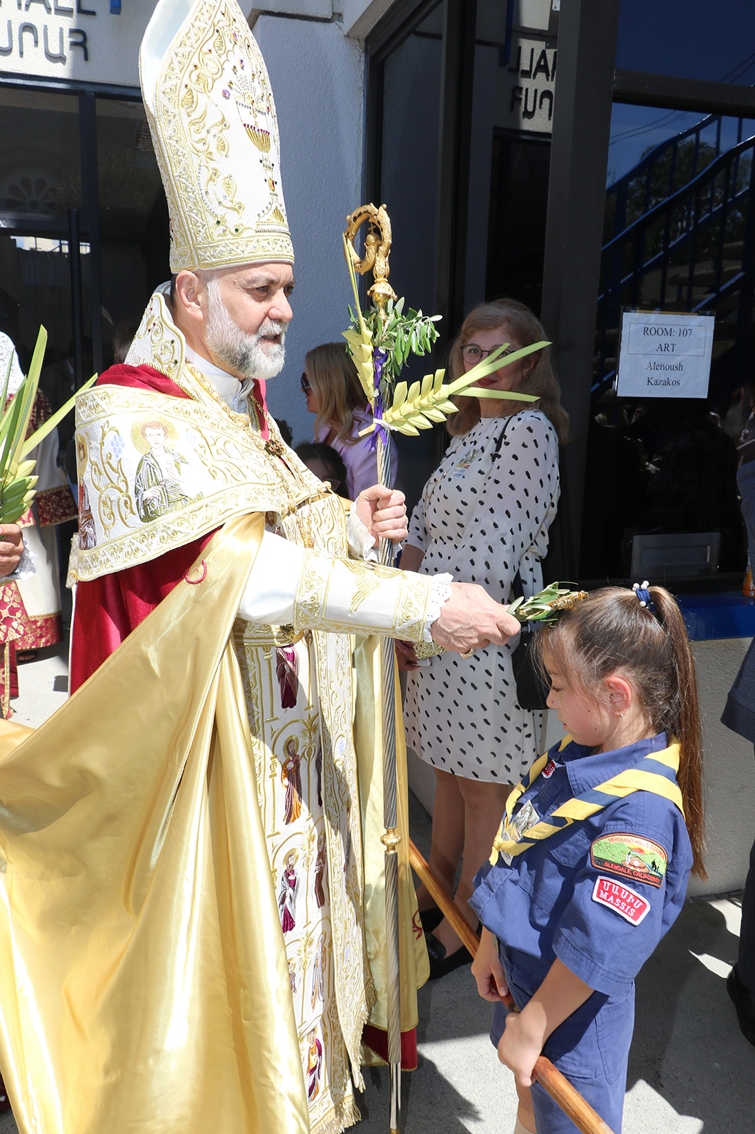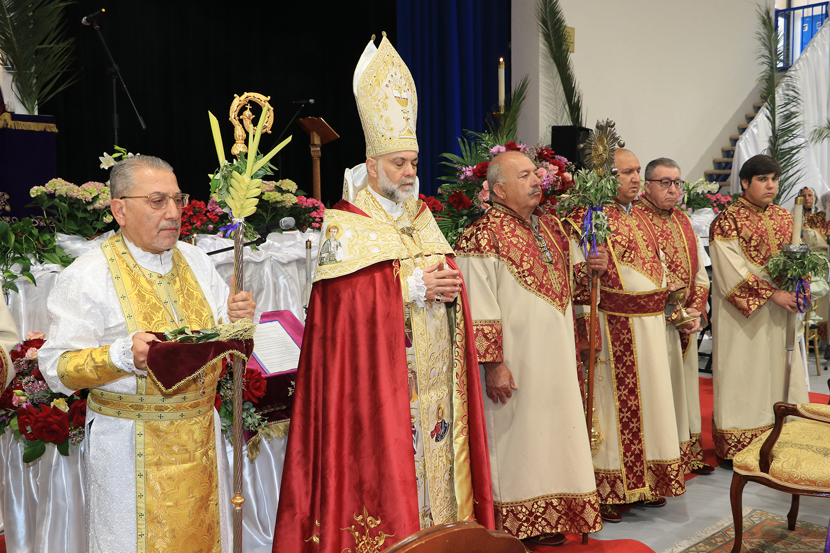 Շարունակելով, Առաջնորդ Սրբազանը աւելցուց, որ ձիթենեաց ճիւղերու այս շքեղ ու տօնական մթնոլորտին շուտով պիտի յաջորդէ Յիսուս Քրիստոսի երկնային կեանքի ամէնամեայ վերջին արարը՝ չարչարանաց, խաչելութեան ու մահուան ծանր լուծը, որ Հայ Եկեղեցւոյ ճամբով յառաջիկայ օրերուն պիտի վերապրինք մենք բոլորս, որպէսզի, միասնաբար, յաջորդ Կիրակի ընթանանք դէպի մեծ տօնը եւ դիմաւորենք Յիսուս Քրիստոսի փառահեղ Յարութեան հրաշքը, այսինքն՝ մեր հոգիներու փրկութեան մեծագոյն ու անկրկնելի տօնը, ապա, հոգեպարար արարողութեան աւարտին, խորան եւ դահլիճ միասնաբար, աղօթքներով փառաբանեցին զԱստուած եւ ուրախութեամբ շնորհաւորեցին միմեանց Ծաղկազարդը: