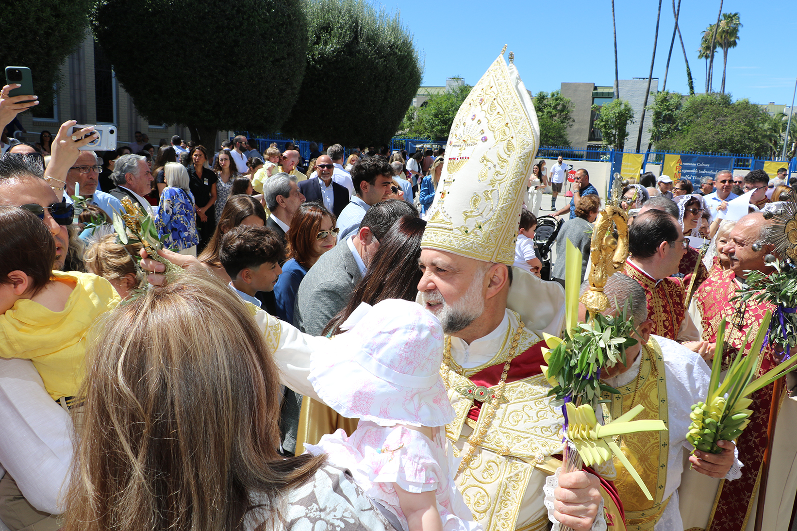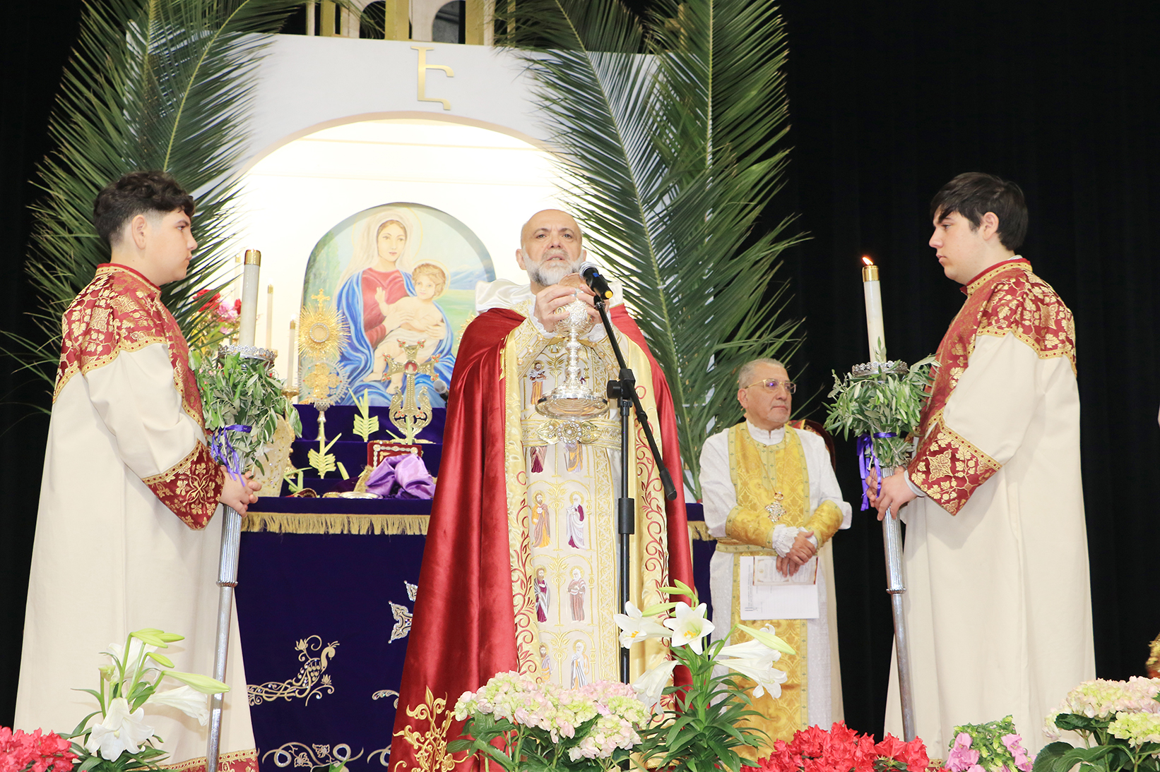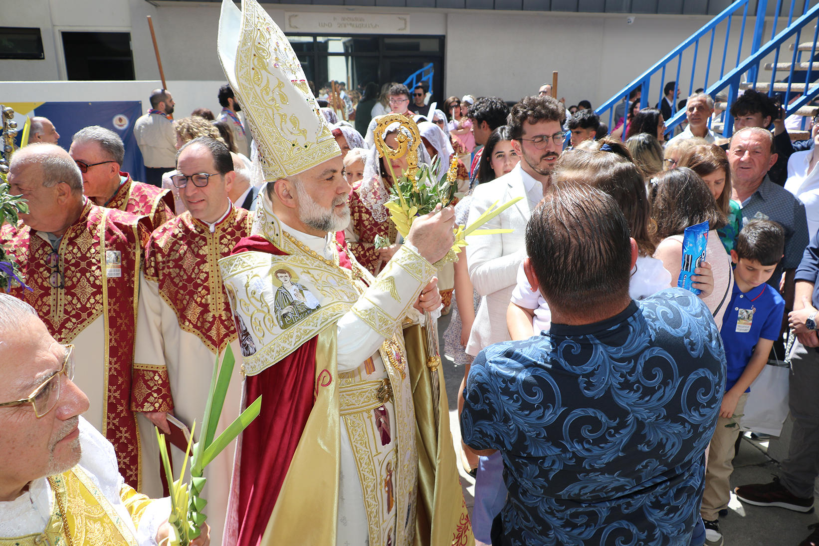 Շարունակելով, Առաջնորդ Սրբազանը աւելցուց, որ ձիթենեաց ճիւղերու այս շքեղ ու տօնական մթնոլորտին շուտով պիտի յաջորդէ Յիսուս Քրիստոսի երկնային կեանքի ամէնամեայ վերջին արարը՝ չարչարանաց, խաչելութեան ու մահուան ծանր լուծը, որ Հայ Եկեղեցւոյ ճամբով յառաջիկայ օրերուն պիտի վերապրինք մենք բոլորս, որպէսզի, միասնաբար, յաջորդ Կիրակի ընթանանք դէպի մեծ տօնը եւ դիմաւորենք Յիսուս Քրիստոսի փառահեղ Յարութեան հրաշքը, այսինքն՝ մեր հոգիներու փրկութեան մեծագոյն ու անկրկնելի տօնը, ապա, հոգեպարար արարողութեան աւարտին, խորան եւ դահլիճ միասնաբար, աղօթքներով փառաբանեցին զԱստուած եւ ուրախութեամբ շնորհաւորեցին միմեանց Ծաղկազարդը: