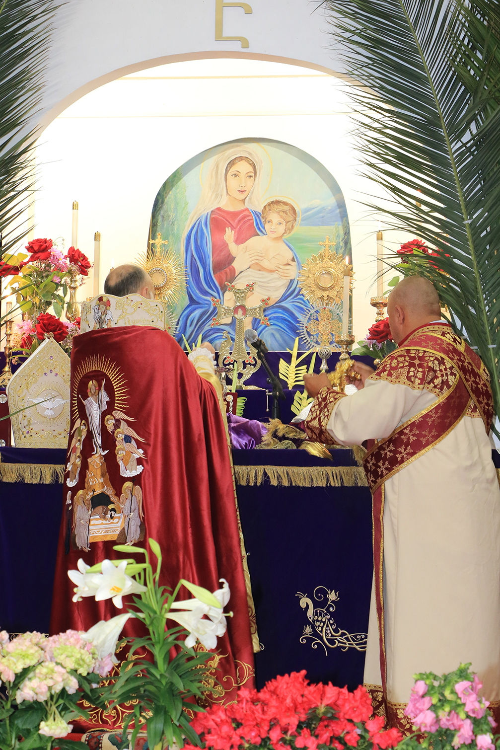 Արեւմտեան Թեմի Առաջնորդ՝ Գերշ. Տ. Գեղամ Ս. Արք. Խաչերեան, Ծաղկազարդի տօնին առիթով եպիսկոպոսական Ս. եւ անմահ Պատարագ մատոյց Էնսինոյի Ս. Նահատակաց համալիրին մէջ, ներկայութեամբ Ազգ. վարչութեան ատենապետ՝ Տիար Վահէ Յովակիմեանի եւ Տիկնոջ, նոյն վարչութեան անդամ՝ Տիկին Ծովիկ Զէյթլեանի եւ ամուսնոյն՝ Կեդր. վարչութեան ներկայացուցիչ՝ Տիար Կայծակ Զէյթլեանի, շրջանի բարերար՝ Տիար Տոքթ. Մայք Սարեանի եւ Տիկնոջ եւ հաւատացեալ ժողովուրդին: