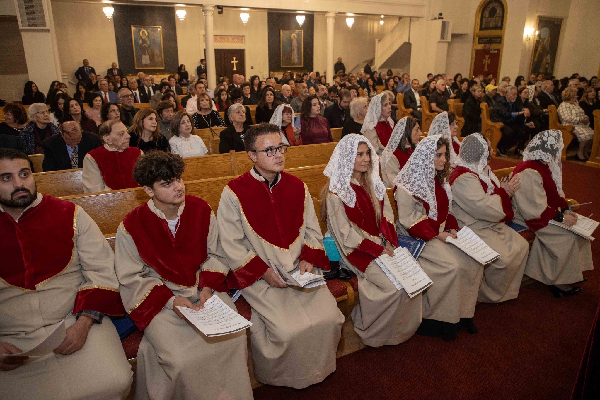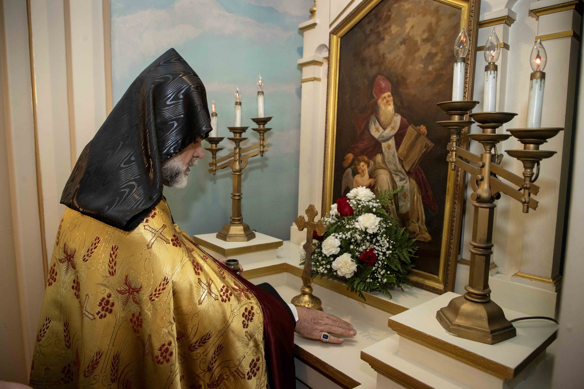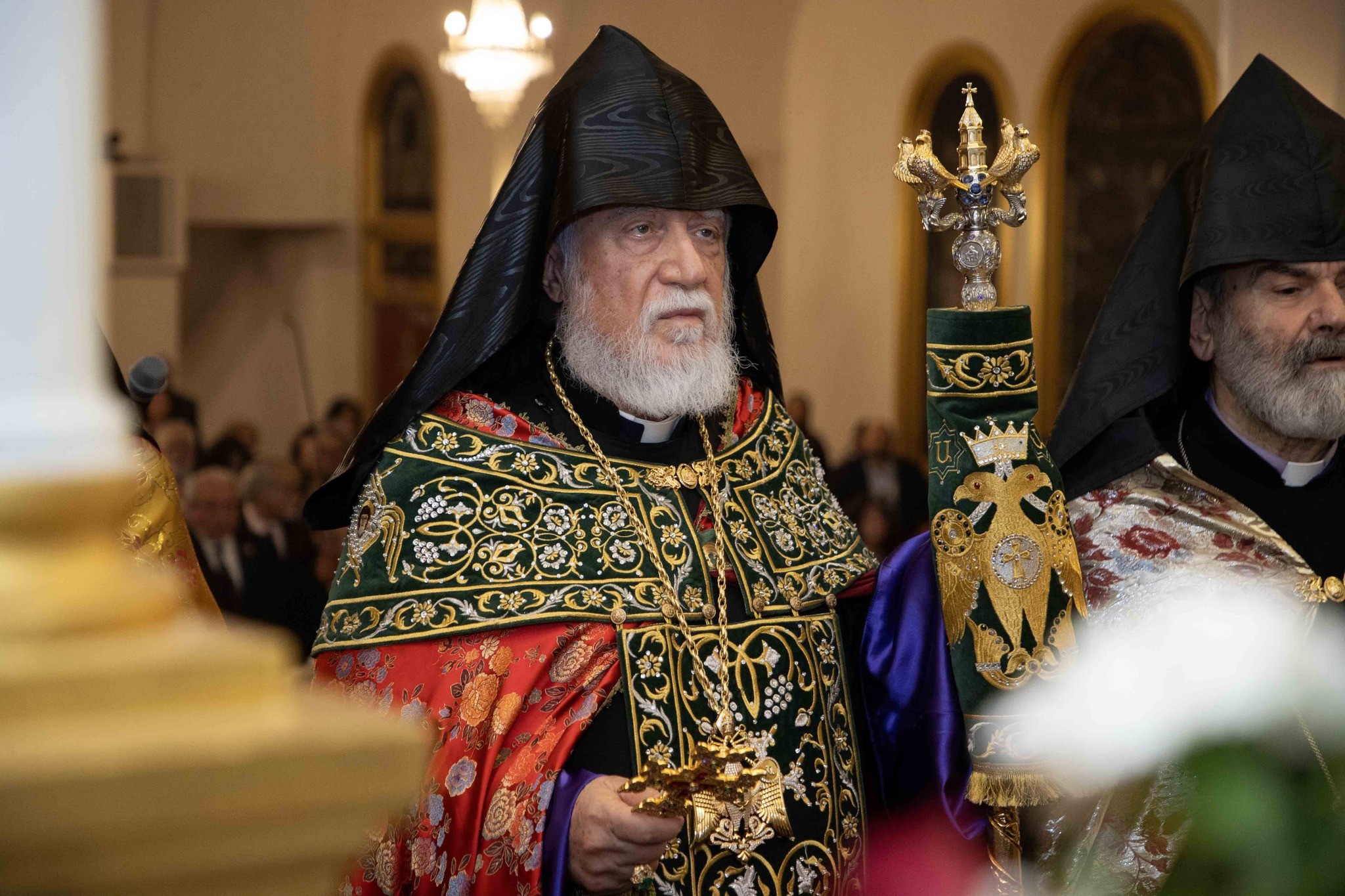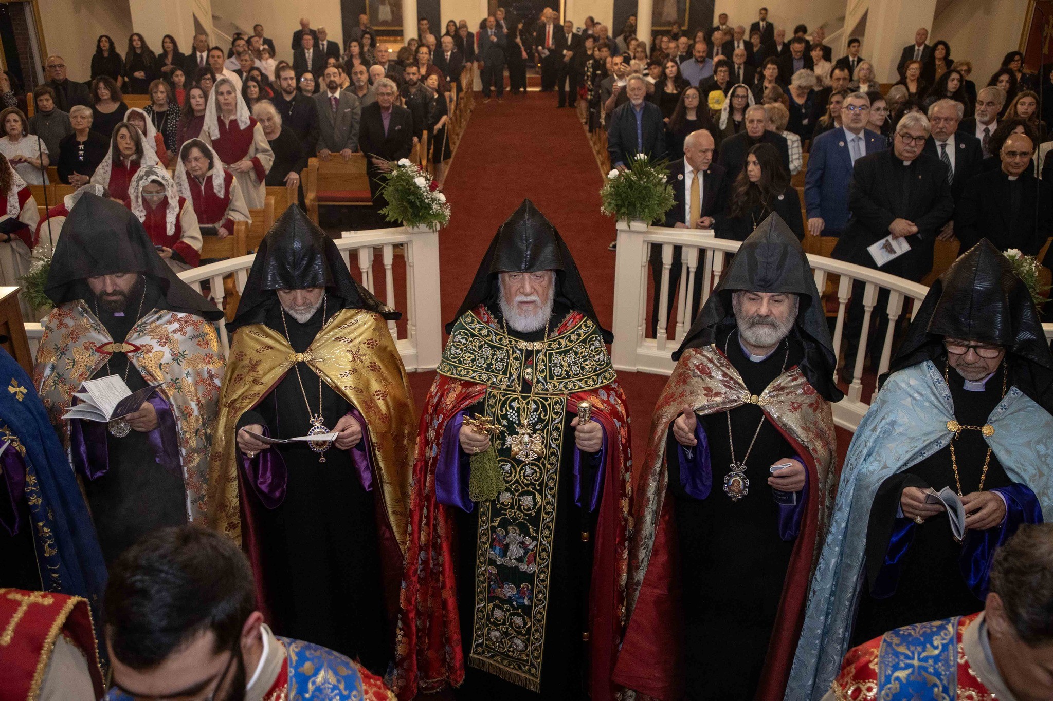 Արդարեւ, եկեղեցւոյ մուտքին, Նորին Սրբութիւնը եւ իր պատուիրակութիւնը դիմաւորուեցան առաջնորդ սրբազան հօր՝ Գեղամ Արք. Խաչերեանի, եկեղեցւոյ հոգեւոր հովիւին՝ Աշոտ Վրդ. Խաչատուրեանի, հոգաբարձութեան, յարակից մարմիններու եւ Ֆրեզնոյի մէջ կայք հաստատած հայորդիներու կողմէ: