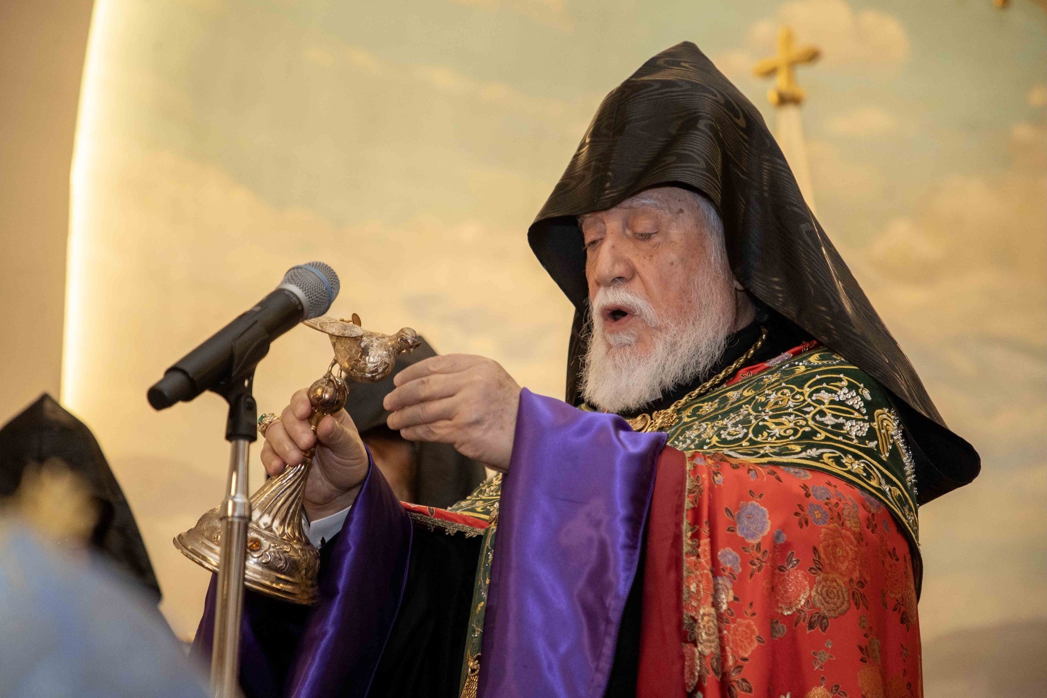 Օծման արարողութեան աւարտին, խօսք առնելով առաջնորդ սրբազան հայրը, իր եւ ֆրեզնոյահայութեան անհուն ուրախութիւնը յայտնեց, որ Նորին Սրբութեան ձեռամբ ու անոր գահակալութեան 30-ամեակի նշման ծիրին մէջ կատարուեցաւ այս պատմական եկեղեցւոյ սուրբ խորանին վերաօծումը։ «Արդ, Վեհափառ Տէր, մեր ժողովուրդի զաւակները լիցքաւորուելով եկեղեցական հոգեպարար արարողութեամբ՝ եկած են ձեր հայրապետական օրհնութիւնը ստանալու ու պատգամը ունկնդրելու»։