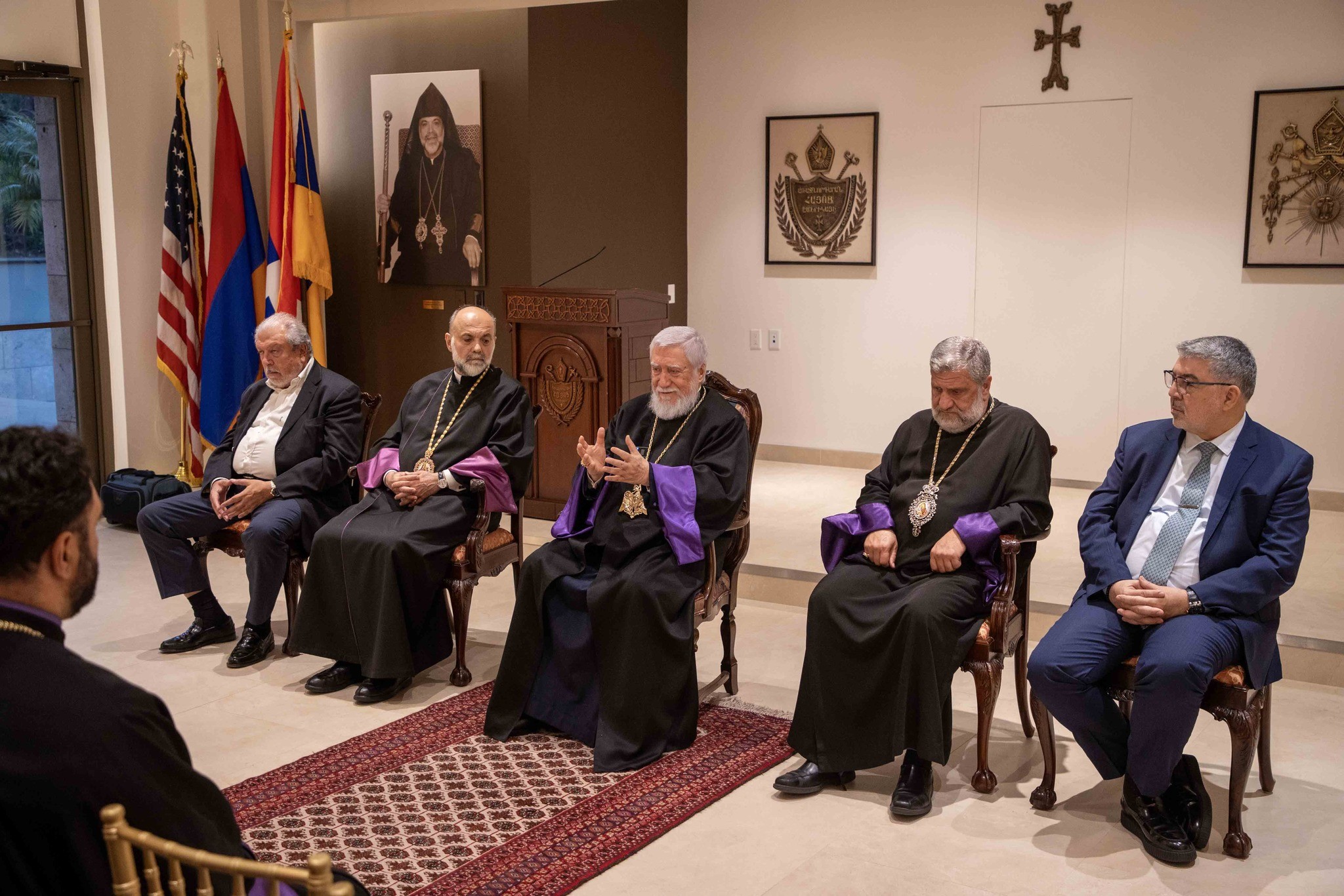 In a significant gathering underscoring the strength of the diaspora, His Holiness Catholicos Aram I met with representatives of Armenian sister organizations on Monday evening, October 27, 2025. The meeting, held at the Prelacy Hall, brought together the prelates of the Western and Canadian Prelacies, members of the clergy, co-chairs of the Lay Council of the Catholicosate, and executive council members from the local Prelacy.