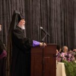 After an artistic program and a commemorative video presentation, Archbishop Kegham Khatcherian, Prelate, addressed the gathering, describing the pontifical visit as “the bell of a new stage” for the community. He then presented His Holiness with a pontifical staff and ring on behalf of the diocese.