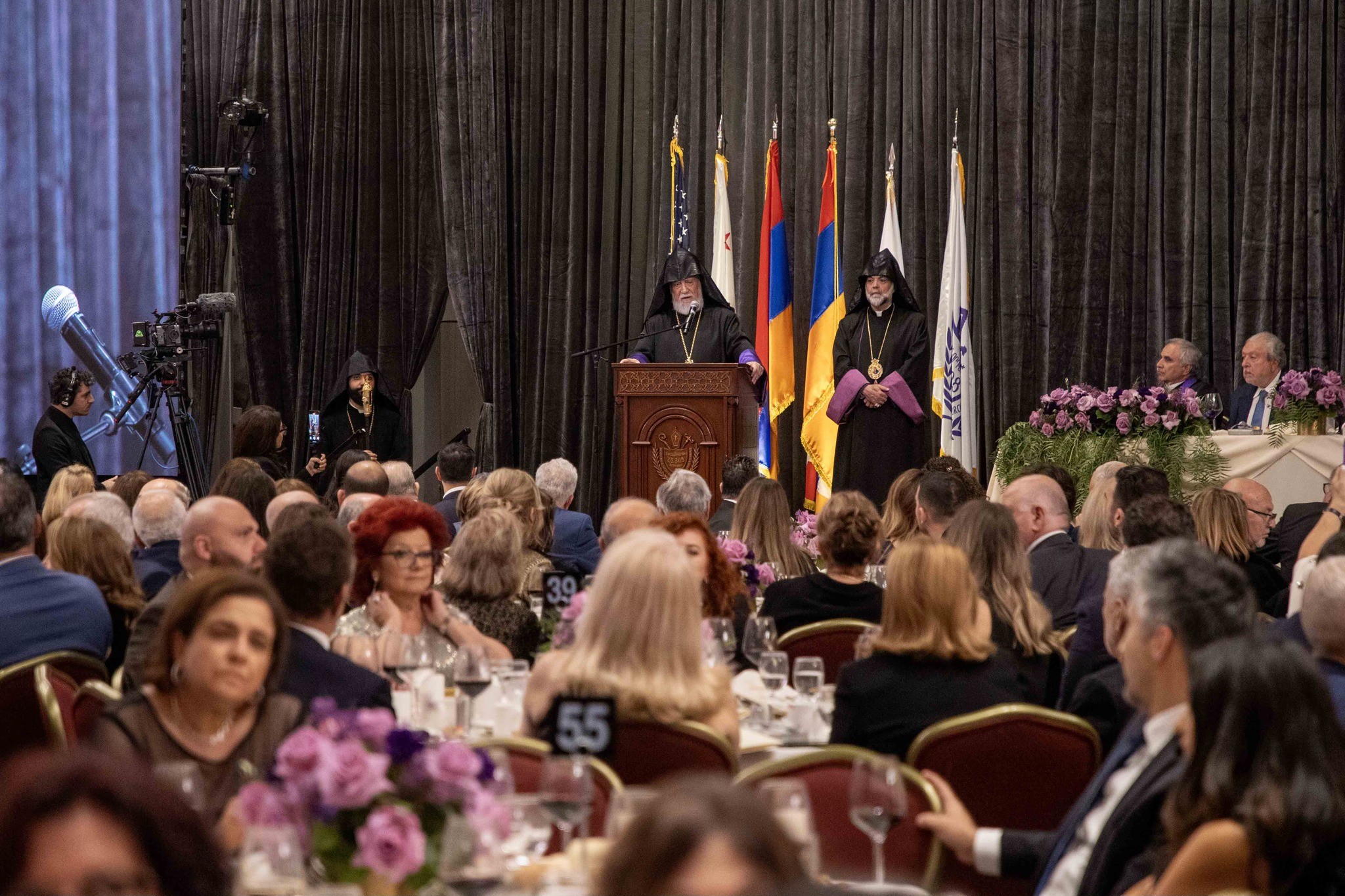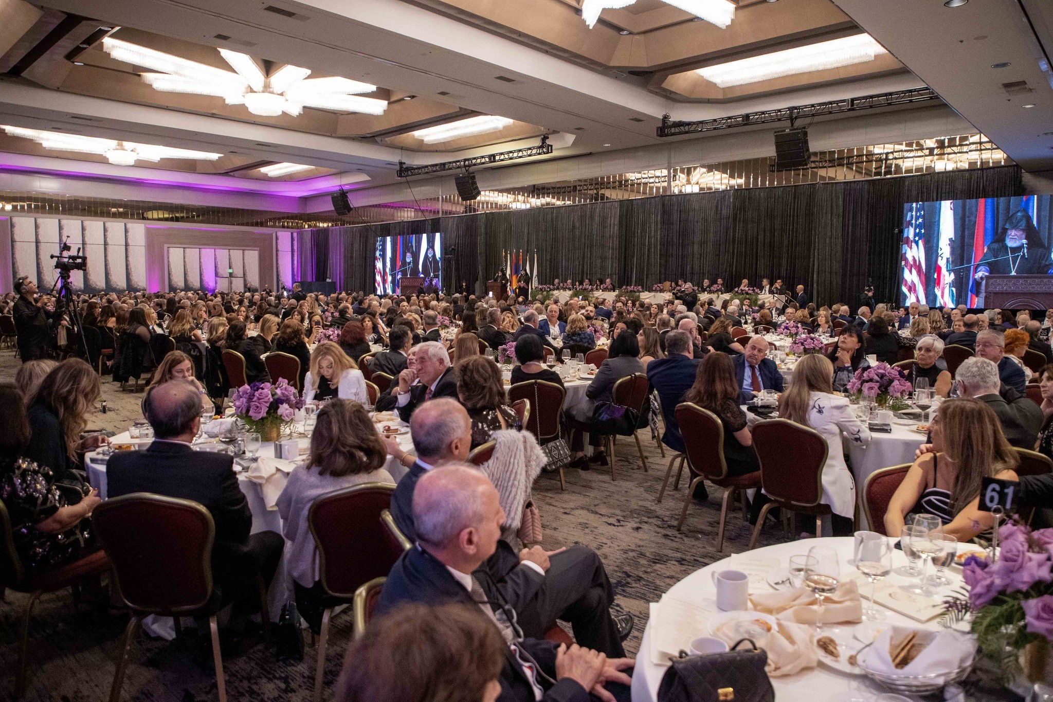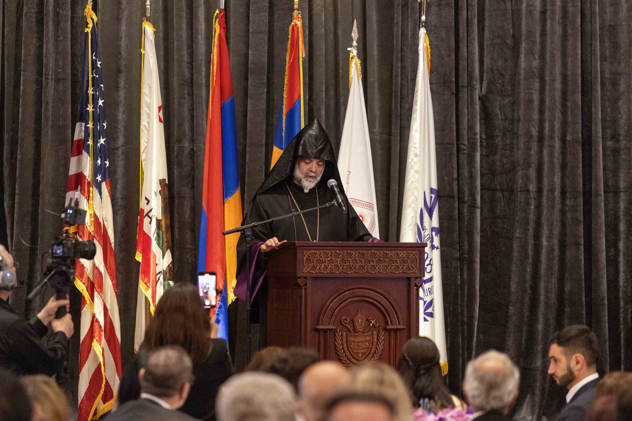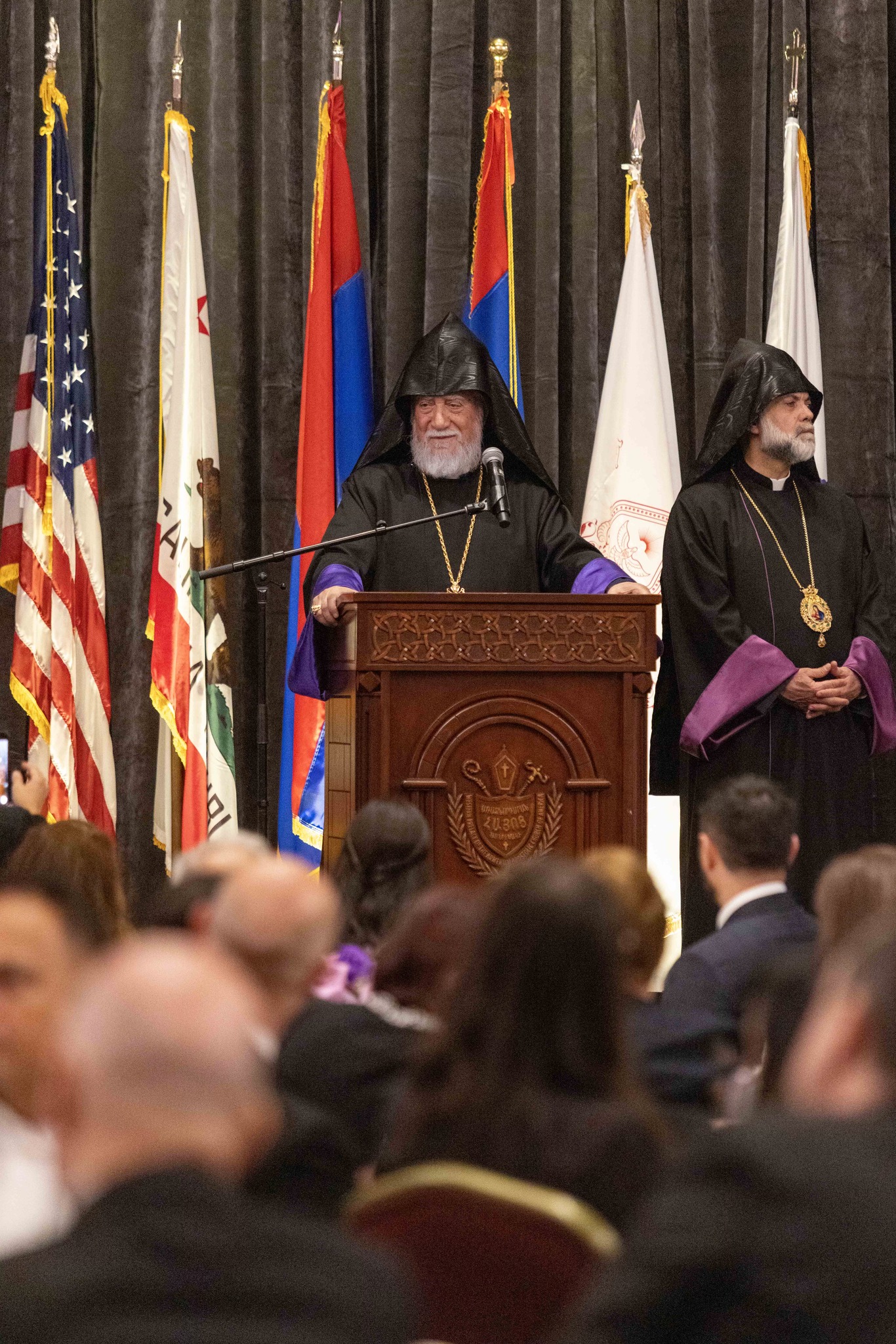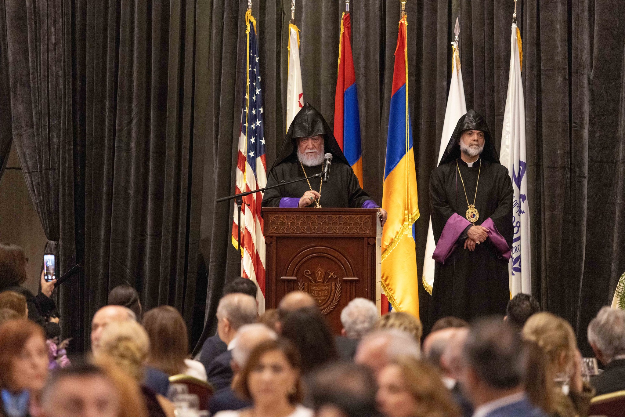 The Western Prelacy of the Armenian Church in the USA hosted an official banquet in honor of His Holiness Catholicos Aram I, on Sunday evening, November 2, 2025 at the Hilton Universal in Los Angeles. The event, attended by over 1,000 guests—including benefactors, clergy, and community representatives—celebrated the pontifical visit of His Holiness and the 30th anniversary of his enthronement.