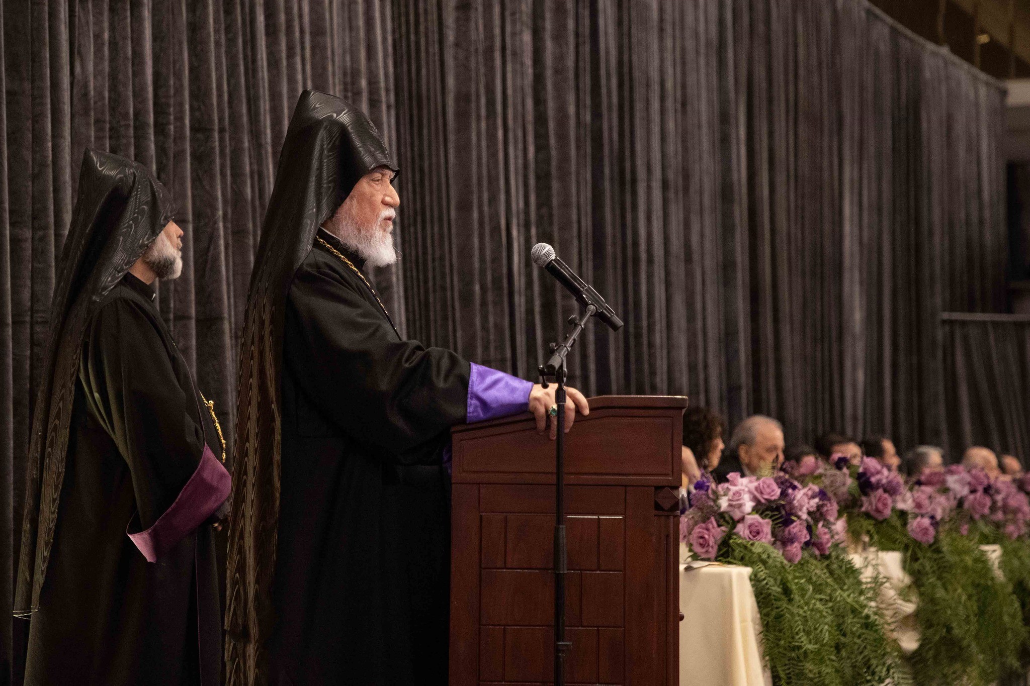 Talar Boyajian was the Master of Ceremonies. The evening opened with the national anthems of the United States and Armenia, followed by remarks from Vahe Hovaguimian, Chairman of the Executive Council of the Prelacy, who expressed the community’s deep honor in welcoming His Holiness after nine years and emphasized the visit’s unifying and revitalizing impact.