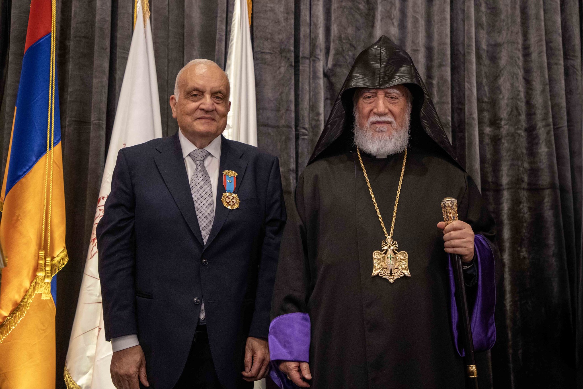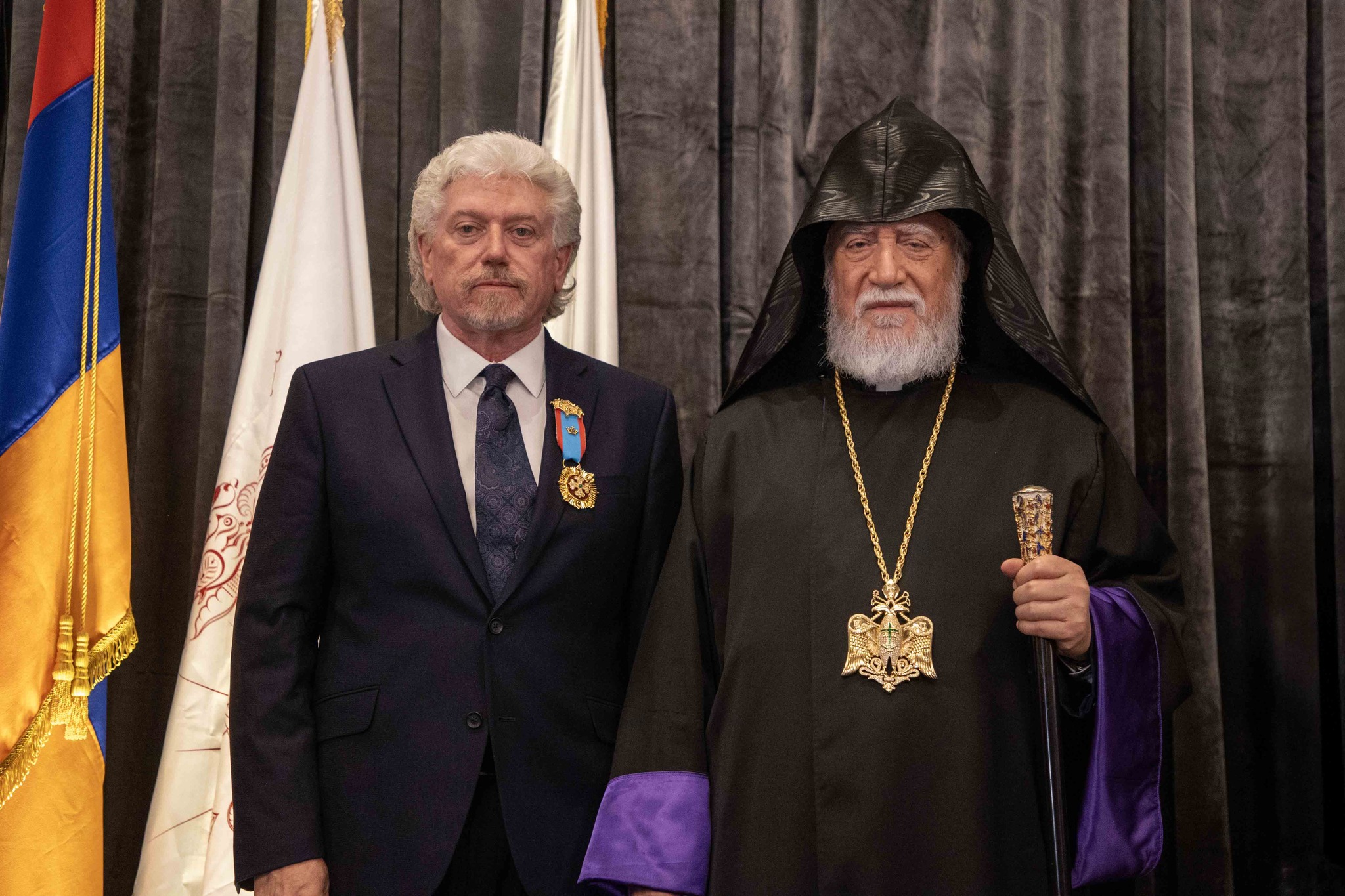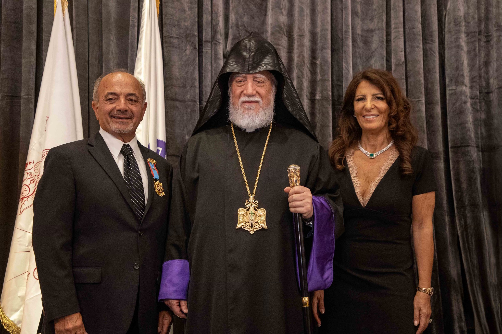 In recognition of their dedicated service and philanthropy, His Holiness bestowed the “Cilician Prince” insignia upon Dr. Eric Esrailian, Dr. Mike Sarian, Mr. and Mrs. Hovsep and Elizabeth Boyajian, Dr. Viken Hovsepian, and Mr. Koko Topalian.