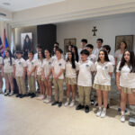 After expressing his appreciation for the visiting group from Holy Martyrs Ferrahian Armenian School, Archbishop Khacherian thanked the school administration and the accompanying educators. He then offered fatherly guidance to the students, encouraging them never to forget their identity, faith, Church, and national values. The Prelate presented each student with a copy of the book “I Am an Armenian Book” by poet Jacques S. Hagopian, as well as Armenian cross necklaces.