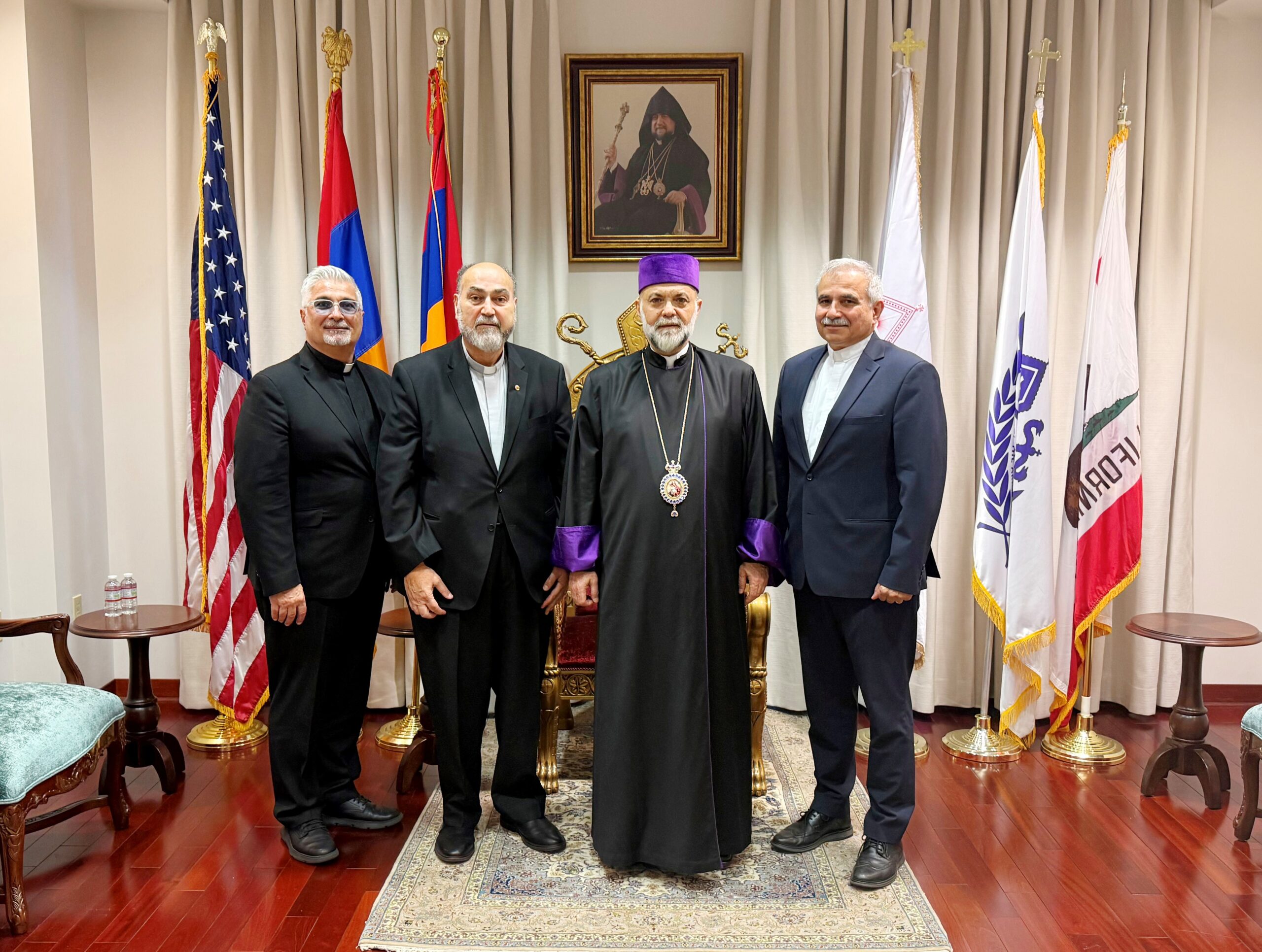 On the morning of Friday, March 20, 2026, Rev. Dr. Krikor Youmshajekian, Executive Director of the Armenian Evangelical World Council (AEWC), visited the Western Prelacy Headquarters. Rev. Youmshajekian was accompanied by Rev. Henrik Shahnazarian, representing the Armenian Evangelical Union of North America, and Rev. Joseph Garabedian, Pastor of the Armenian Cilicia Evangelical Church of Pasadena.
